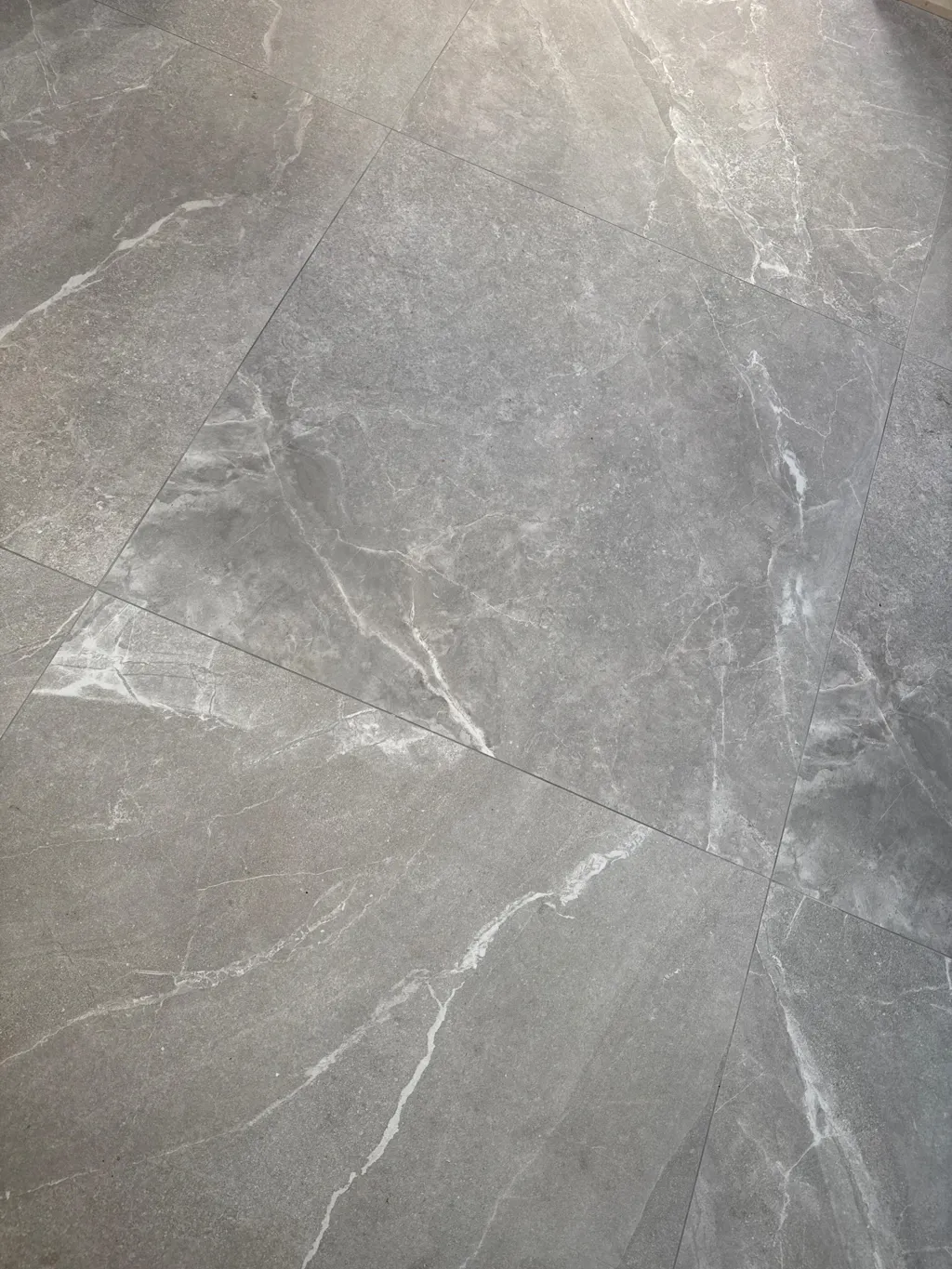 Presenting our new extra-large, anti-slip Madrid Grey stone-effect porcelain tiles, sized at 1000x1000 mm. These versatile tiles are ideal for both walls and floors, and can also be used outdoors when installed on a solid concrete base. Perfect for creating a modern aesthetic in kitchens and open-plan living areas, they enable seamless indoor and outdoor matching. Using the same tile in different spaces, particularly in this large format, creates a stunning illusion of expanded space and continuity.