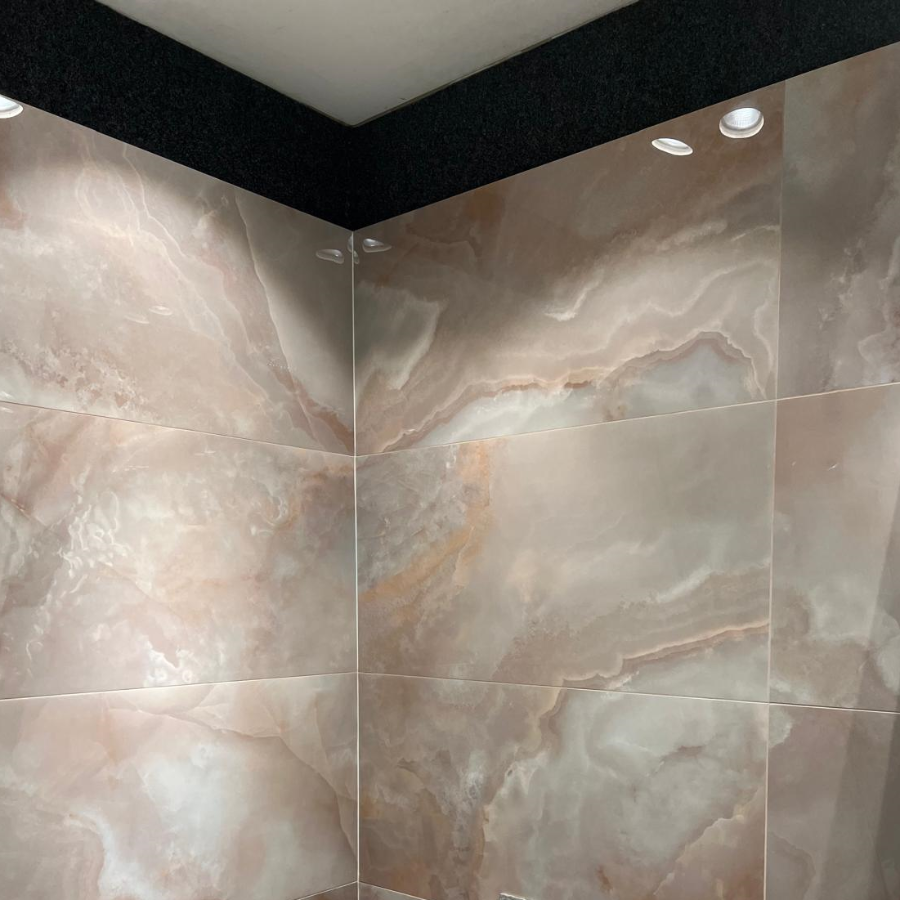 These onyx effect tiles are capable of illuminating your interior space. Measuring 1200x600mm, the extra-large porcelain tiles are well-suited for modern living spaces, allowing you to define your interior design with elegance and sophistication.